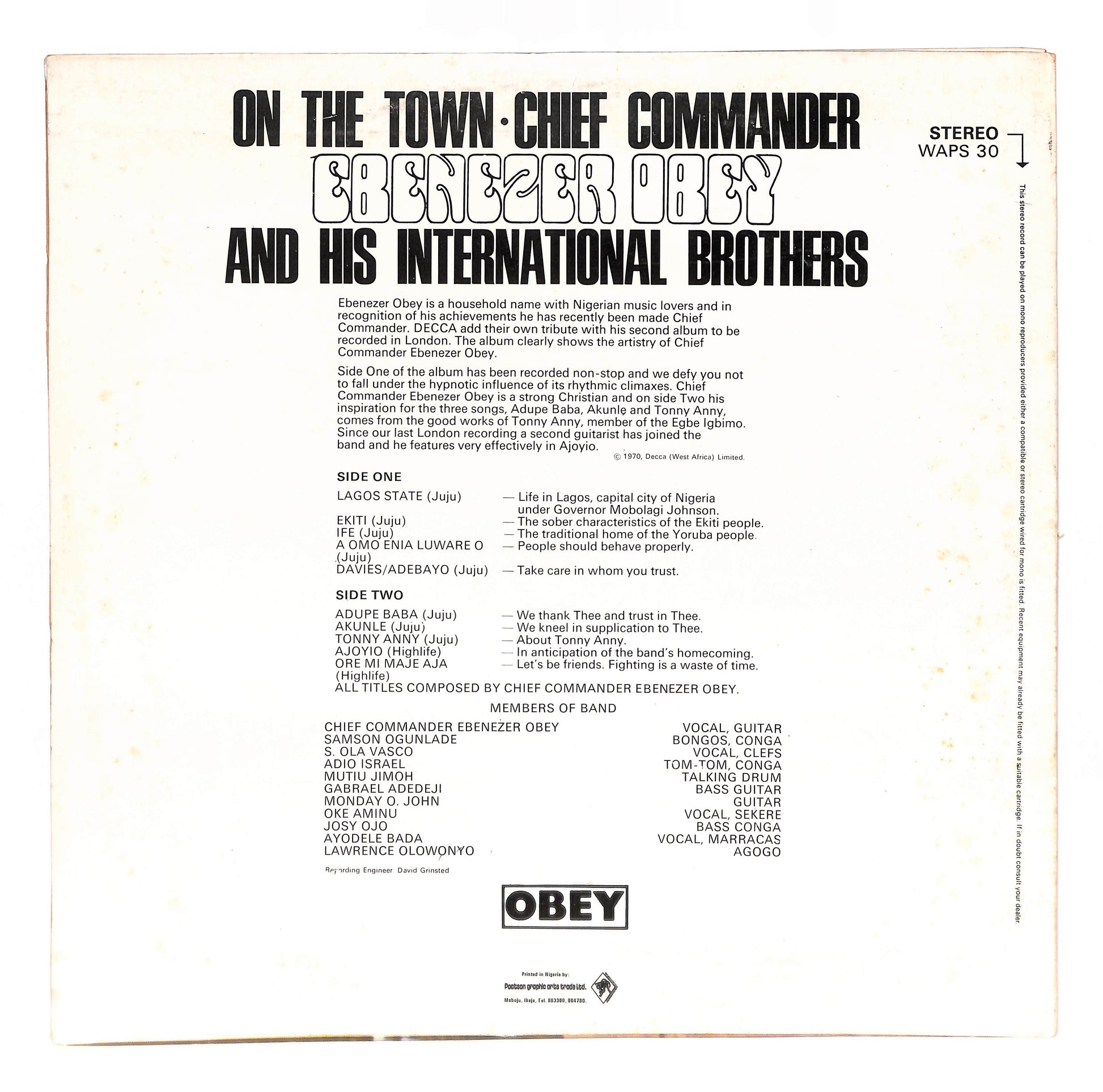 Ebenezer Obey And His International Brothers - On The Town