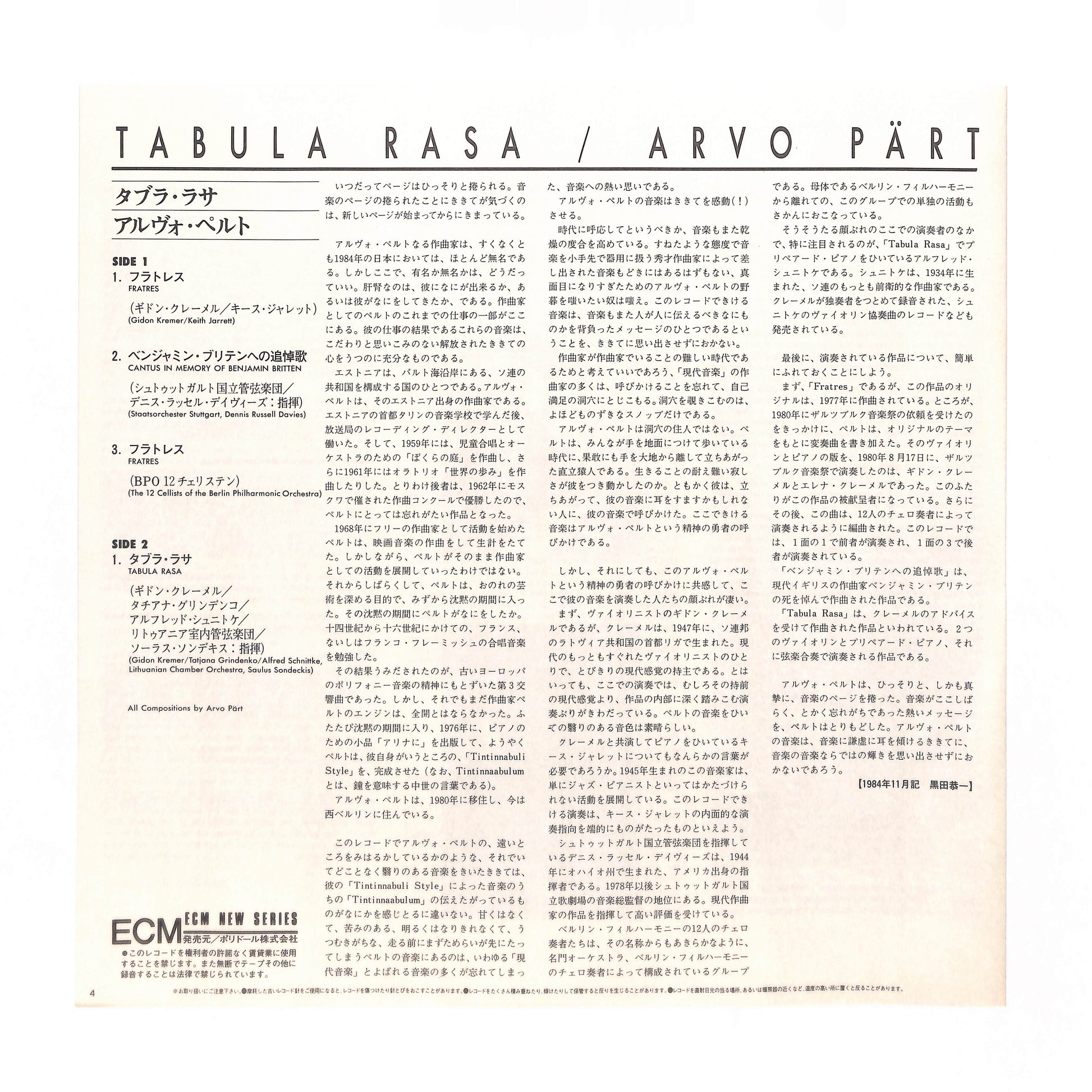 Arvo Pärt - Tabula Rasa