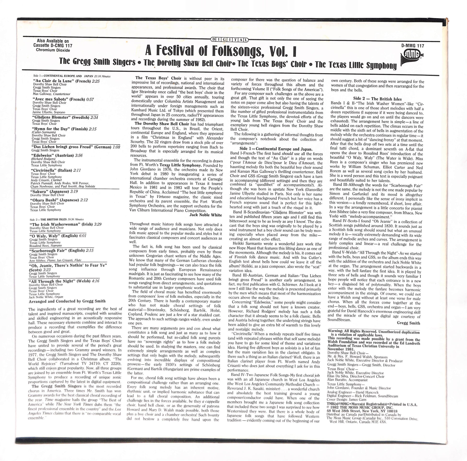 Gregg Smith / Gregg Smith Singers, Dorothy Shaw Bell Choir, Texas Boy's Choir, Texas Little Symphony - A Festival of Folksongs Vol.1