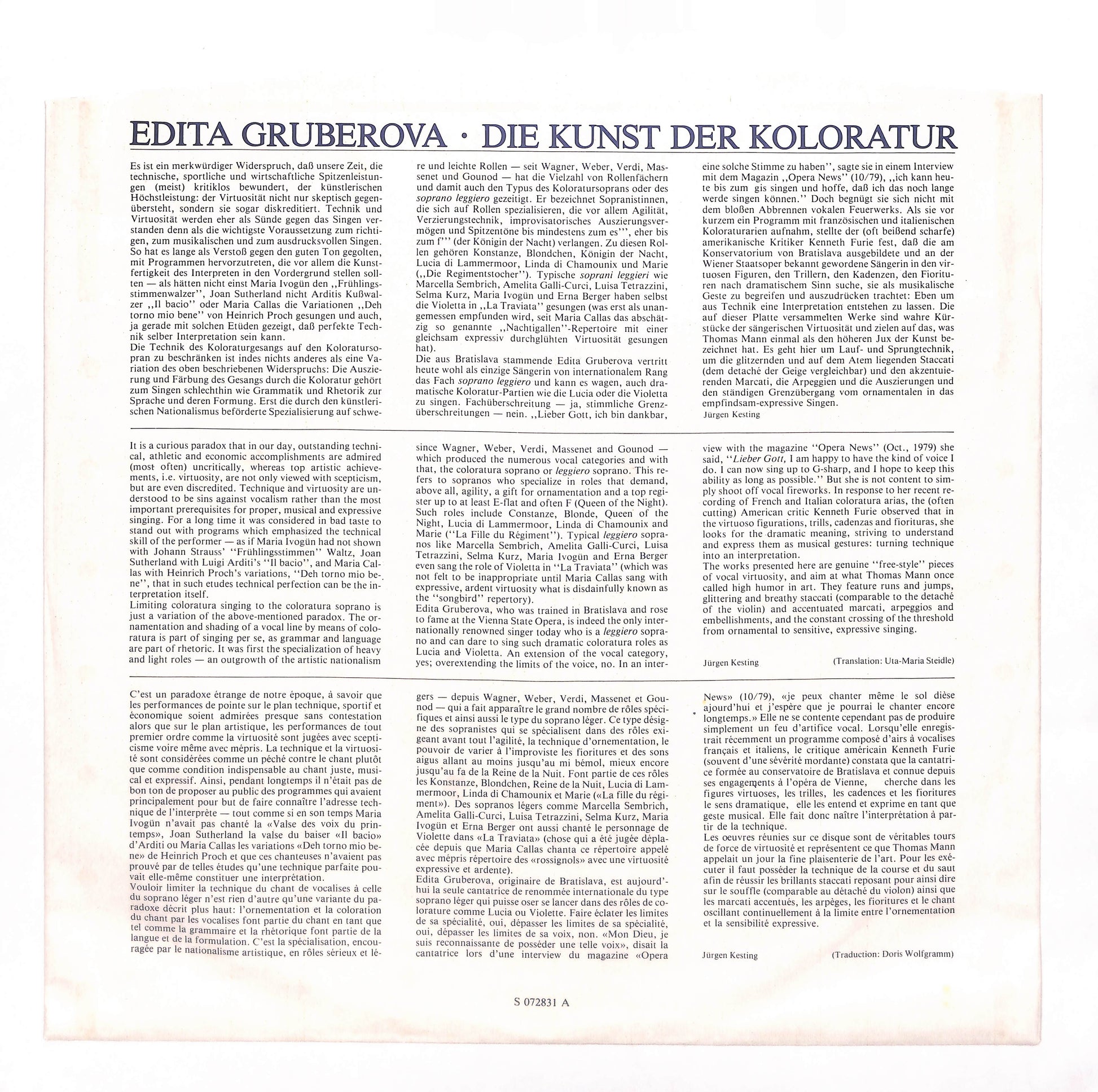 Edita Gruberova / Radio-Sinfonieorchester Stuttgart / Kurt Eichhorn - The Art Of Coloratura = Kunst Der Koloratur = L'Art De La Coloratura
