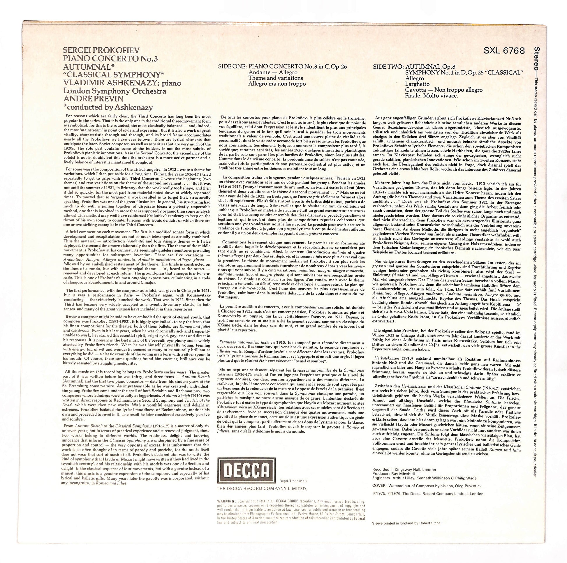 Sergei Prokofiev, Vladimir Ashkenazy, London Symphony Orchestra, André Previn - Piano Concerto No. 3 / Classical Symphony / Autumnal