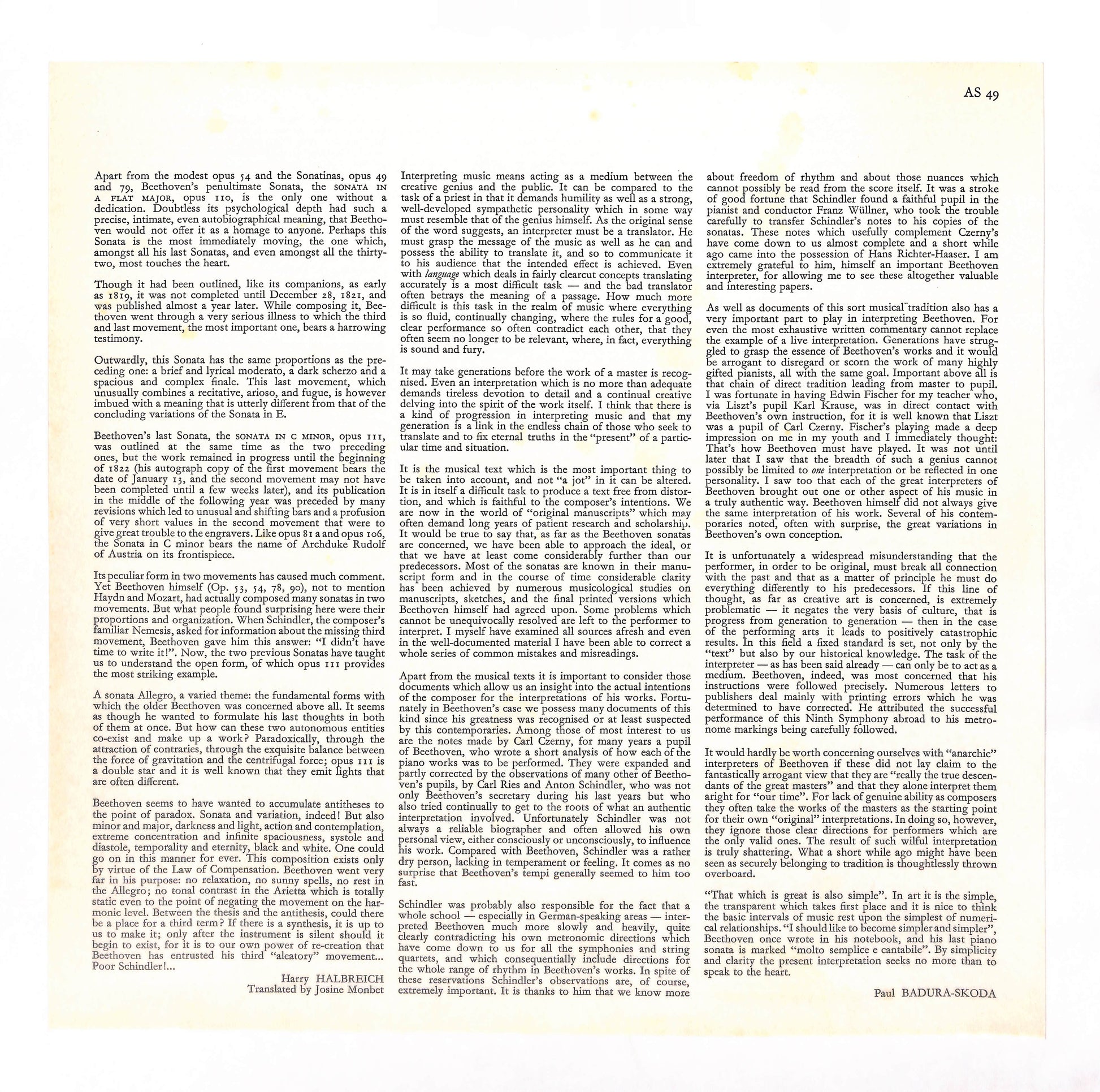 Paul Badura-Skoda, Beethoven - Deux Sonates Pour Le Piano-Forte - Oeuvres 110 & 111