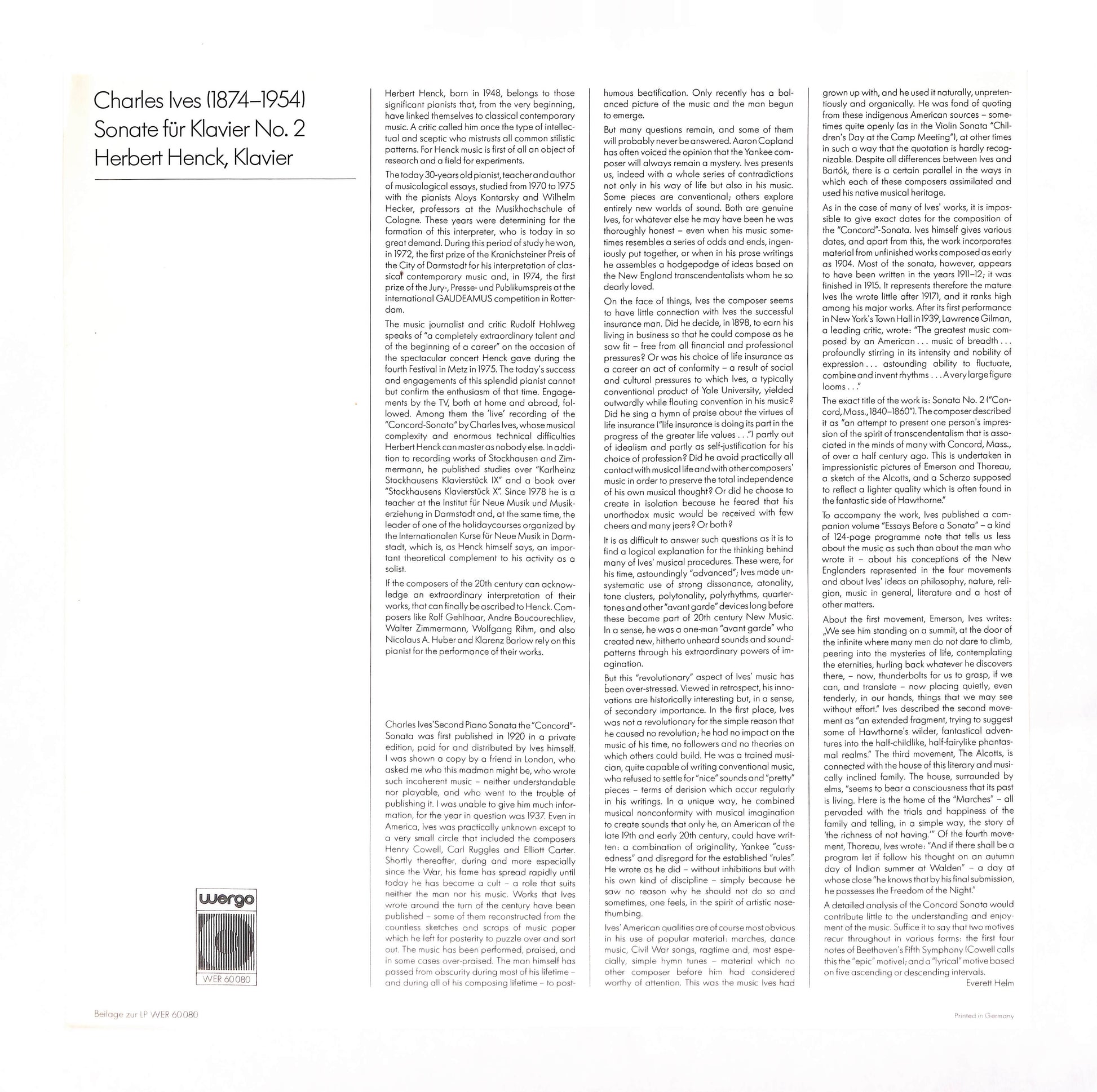 Charles Ives, Herbert HenckLabel