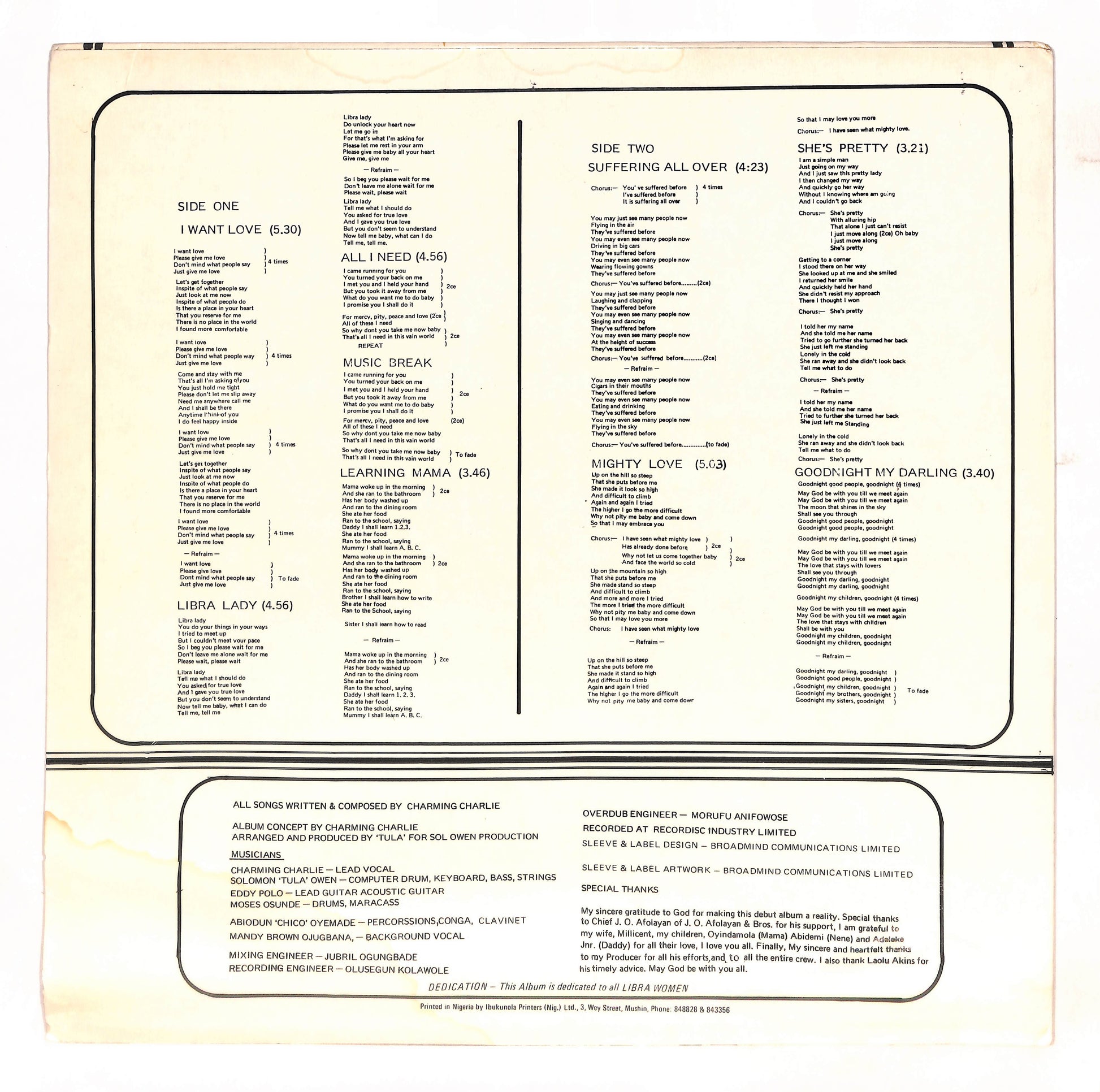 Very Good Plus / Very Good /