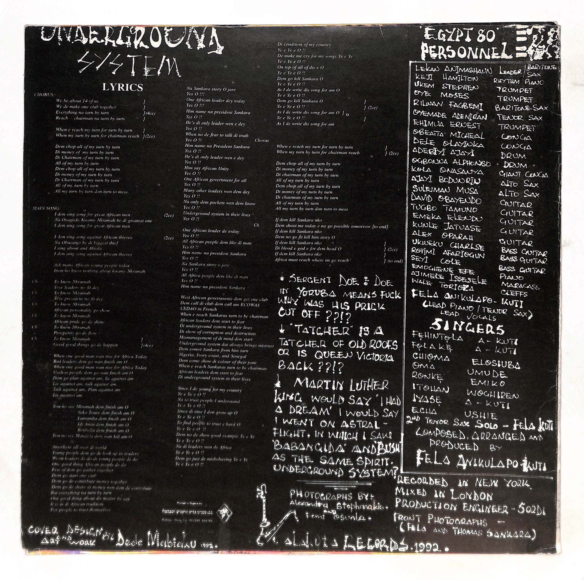 Fela Anikulapo-Kuti And Egypt 80 - Underground System