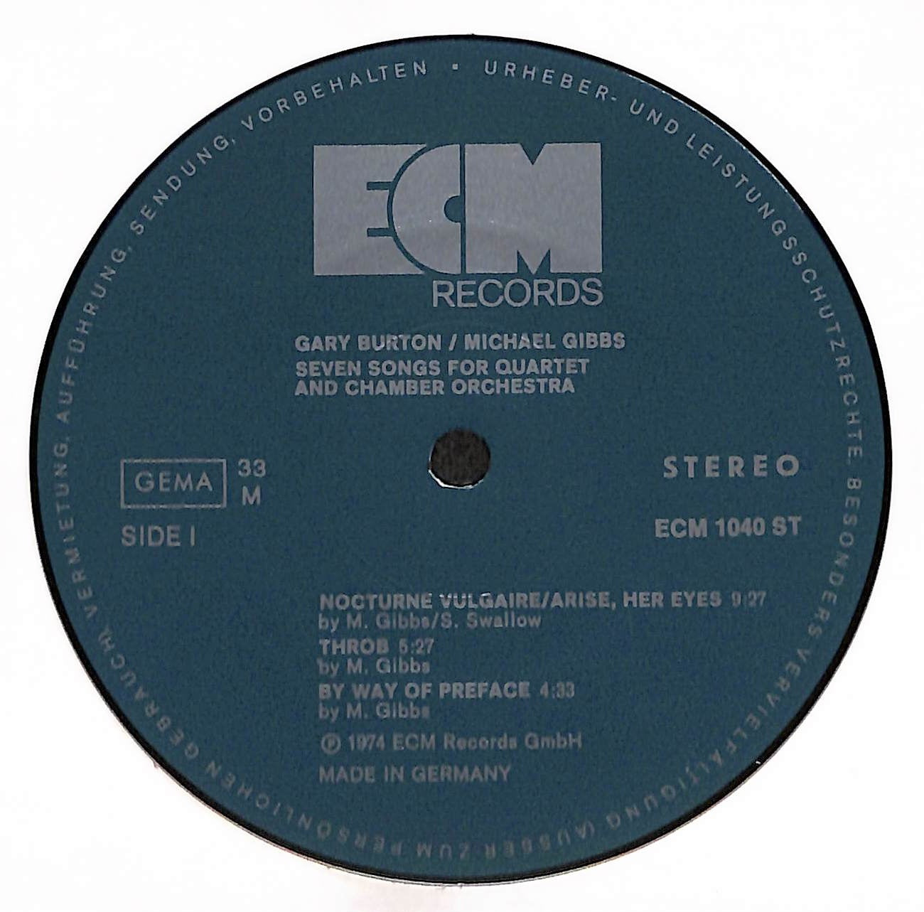 Gary Burton Music By Michael Gibbs - Seven Songs For Quartet And Chamber Orchestra