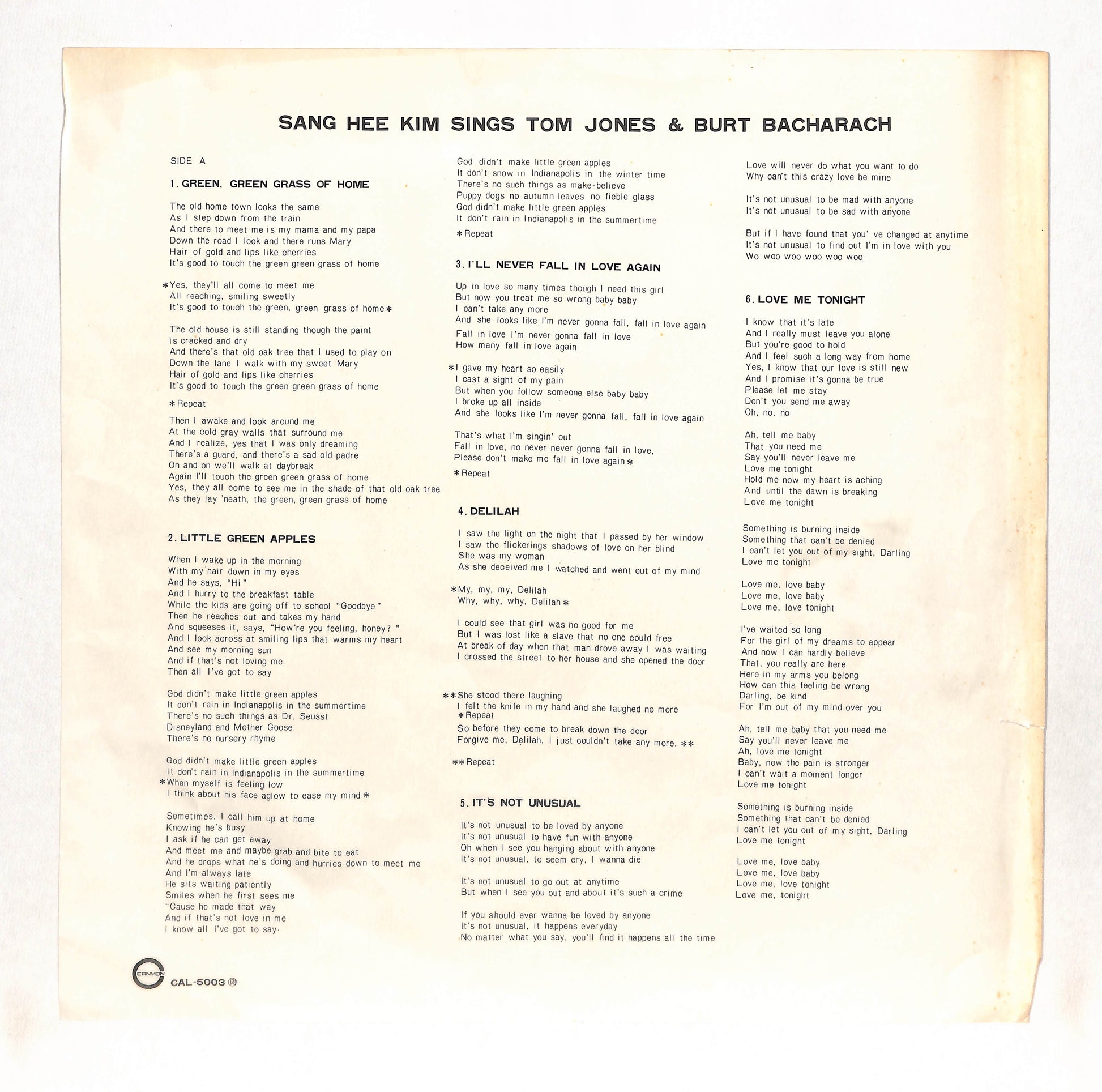 Sang Hee Kim - Sings Tom Jones & Burt Bacharach