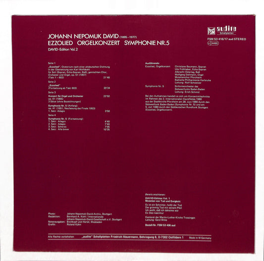 Johann Nepomuk David - Ezzolied Orgelkonzert Symphonie Nr. 5
