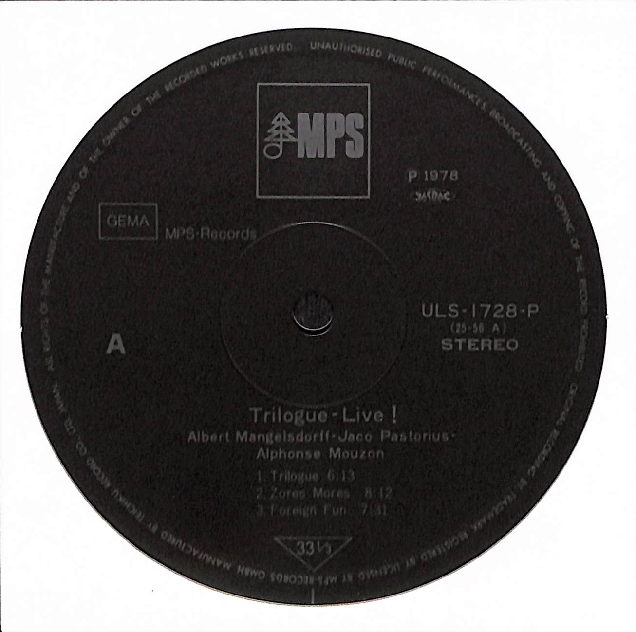 Albert Mangelsdorff - Alphonse Mouzon - Jaco Pastorius - Trilogue - Live At The Berlin Jazz Days