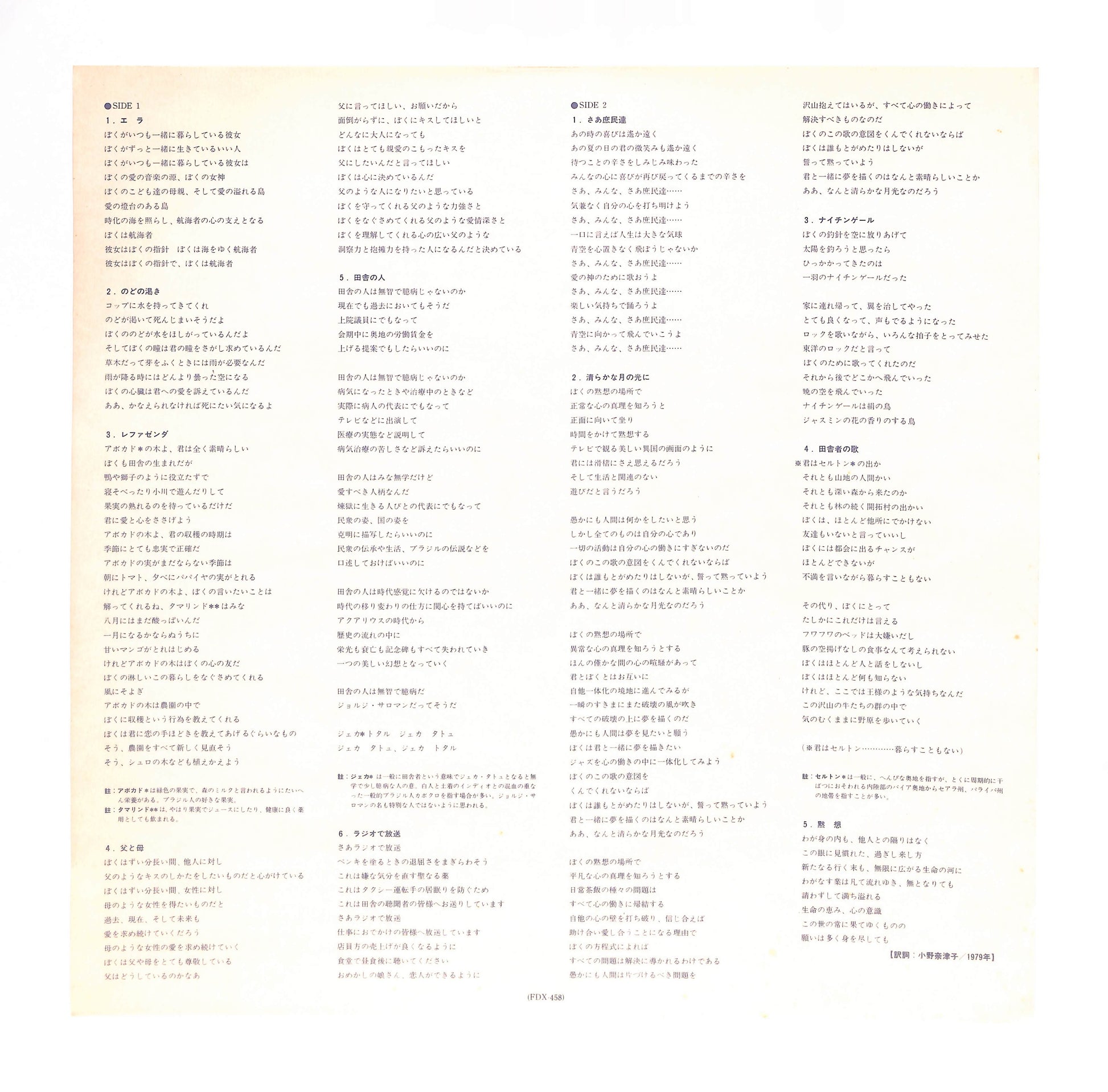 良品~並品。スレ、キズ、シミ、シワ、折れ、破れ、書込み、シール貼り(or 貼り跡)、テープ補修等、目立つ劣化や欠陥が認められる状態。程度に応じてVG+/VG/VG-の3段階に分けています。