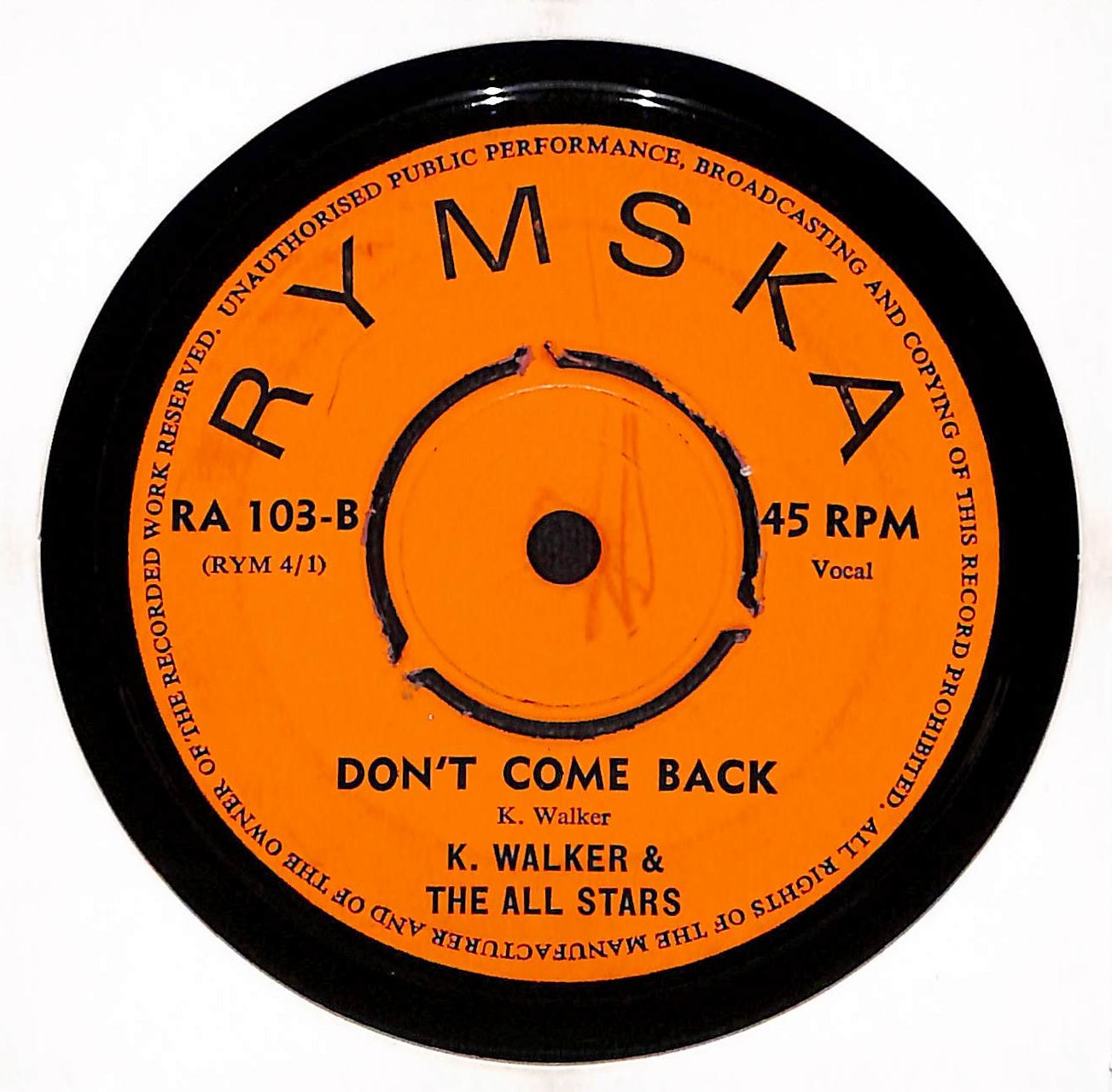 K. Walker & The All Stars - One Minute To Zero / Don't Come Back