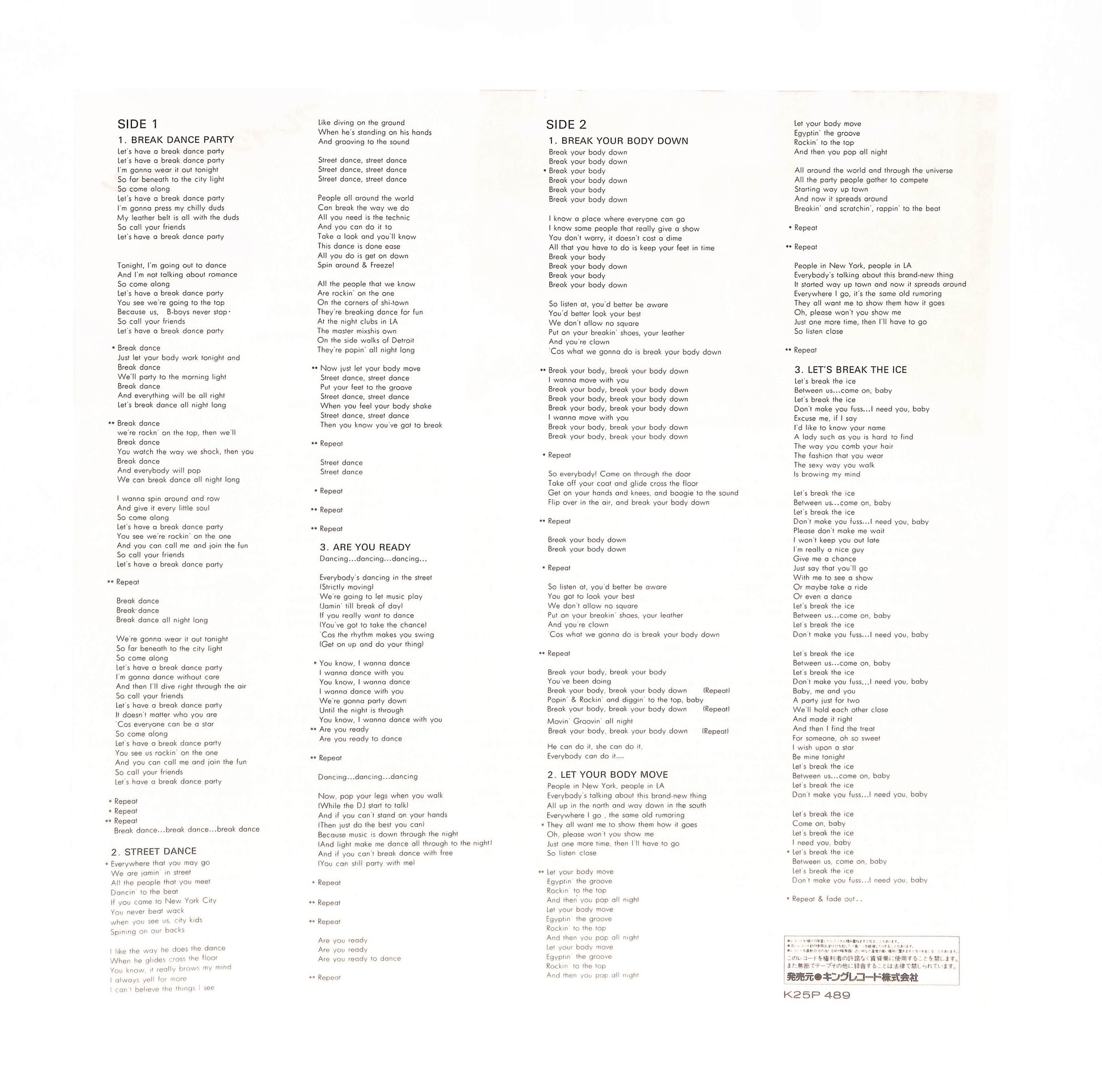 良品~並品。スレ、キズ、シミ、シワ、折れ、破れ、書込み、シール貼り(or 貼り跡)、テープ補修等、目立つ劣化や欠陥が認められる状態。程度に応じてVG+/VG/VG-の3段階に分けています。