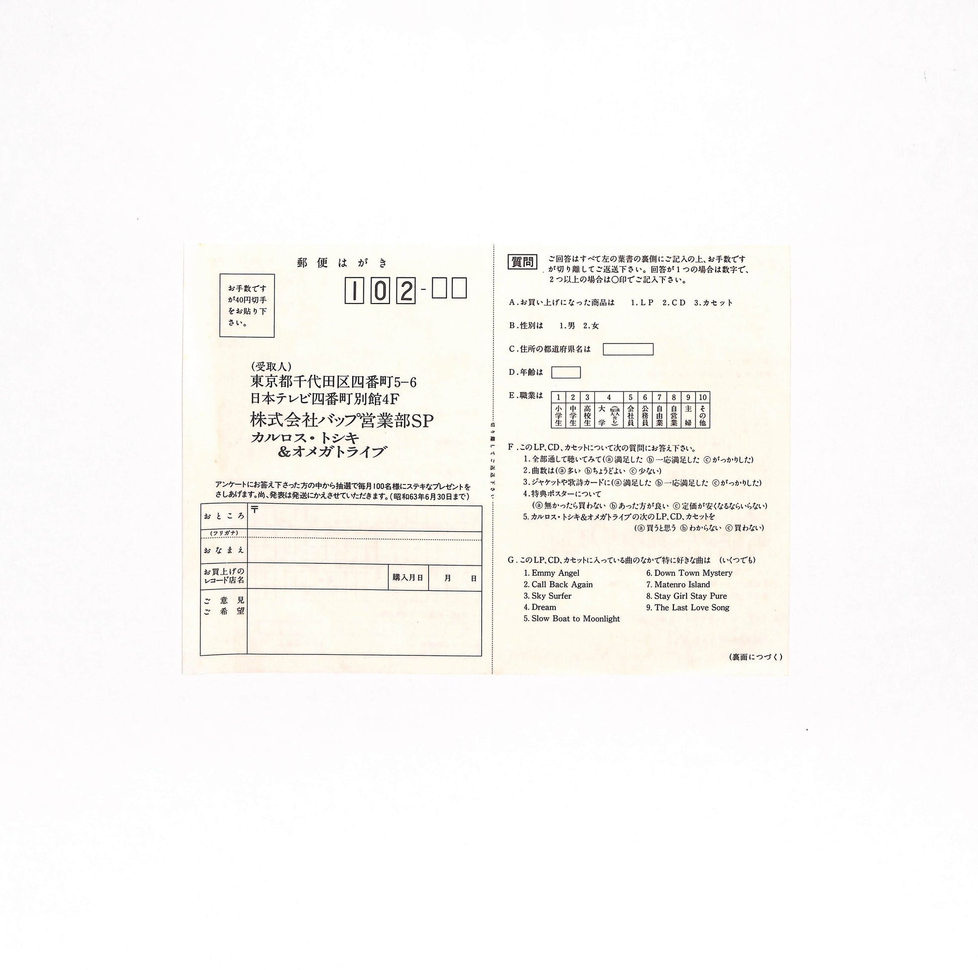 美品。わずかなスレ、キズ、シミ、シワ、折れ、破れ、書込み、シール貼り(or 貼り跡)等、何らかの劣化や欠陥は認められますが、いずれも軽度で、中古品としては大変良好な状態。程度に応じてEX+/EX/EX-の3段階に分けています。