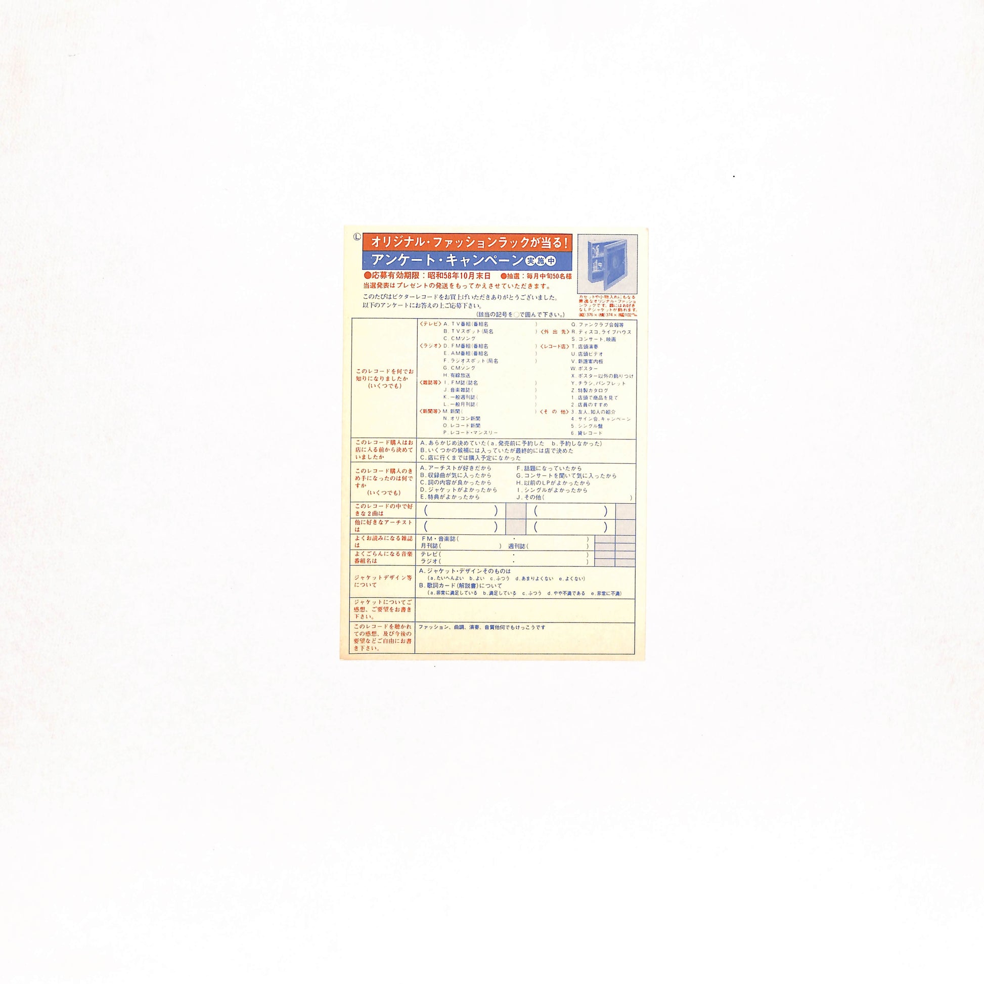良品~並品。スレ、キズ、シミ、シワ、折れ、破れ、書込み、シール貼り(or 貼り跡)、テープ補修等、目立つ劣化や欠陥が認められる状態。程度に応じてVG+/VG/VG-の3段階に分けています。