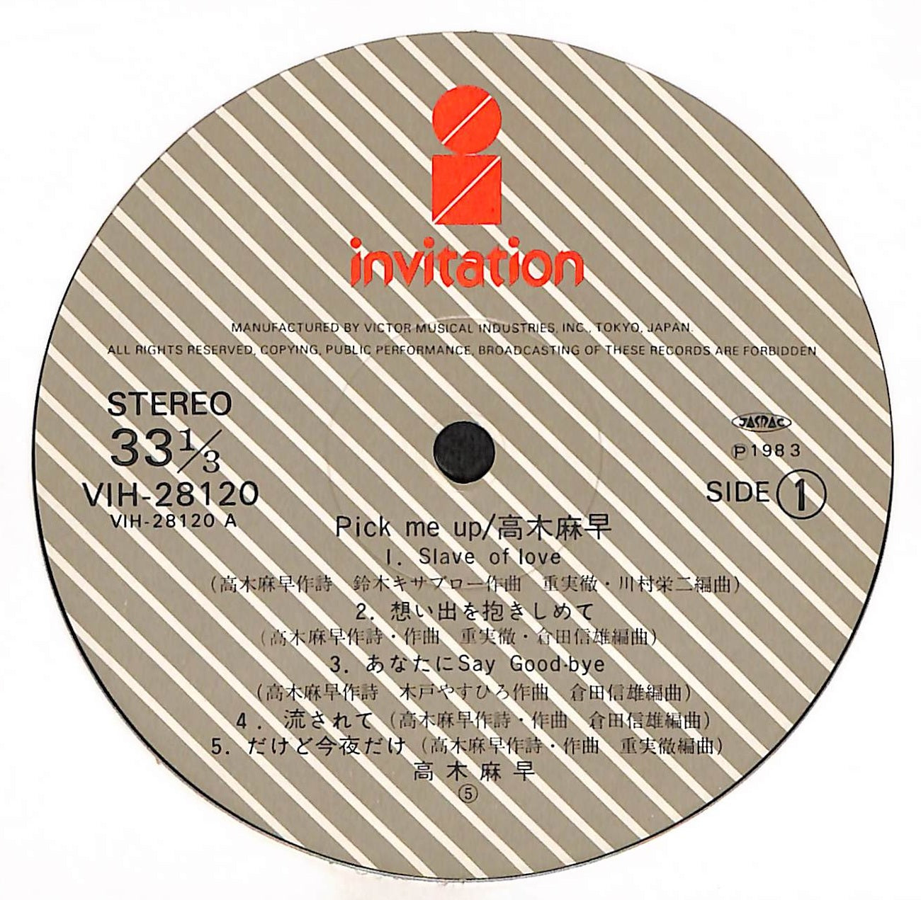 良品~並品。全体的にスレやキズが目立ち、中古品相応の使用感が認められる状態。再生に問題はありませんが、チリプツや目立つノイズが発生する可能性があります。程度に応じてVG+/VG/VG-の3段階に分けています。