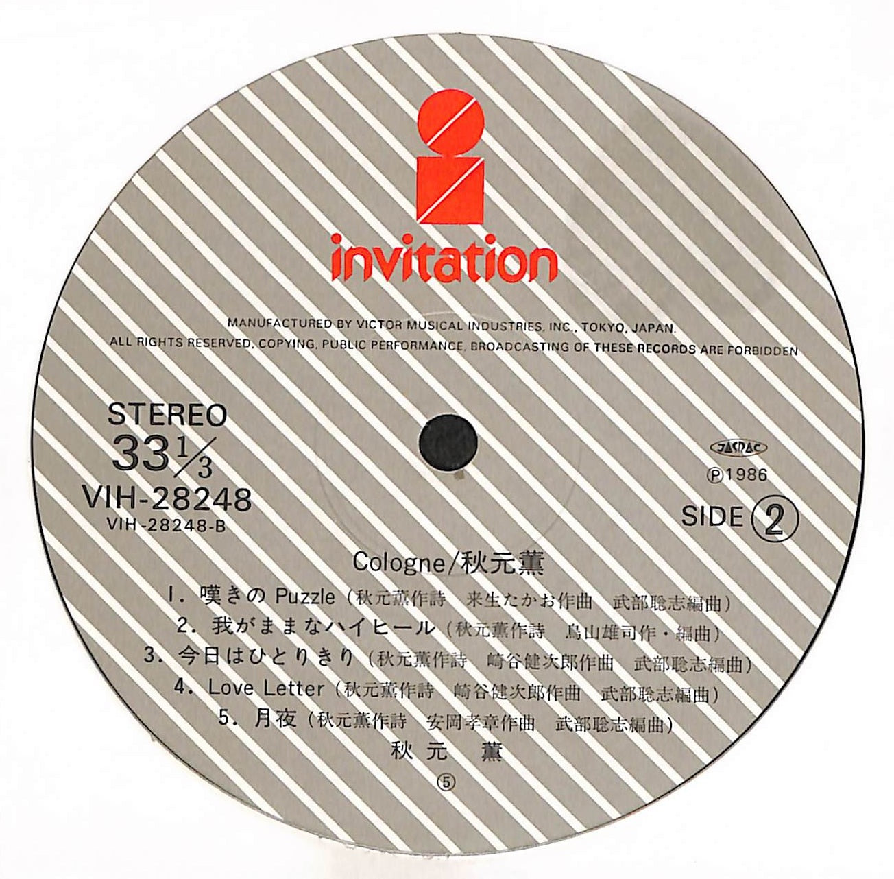 良品~並品。全体的にスレやキズが目立ち、中古品相応の使用感が認められる状態。再生に問題はありませんが、チリプツや目立つノイズが発生する可能性があります。程度に応じてVG+/VG/VG-の3段階に分けています。