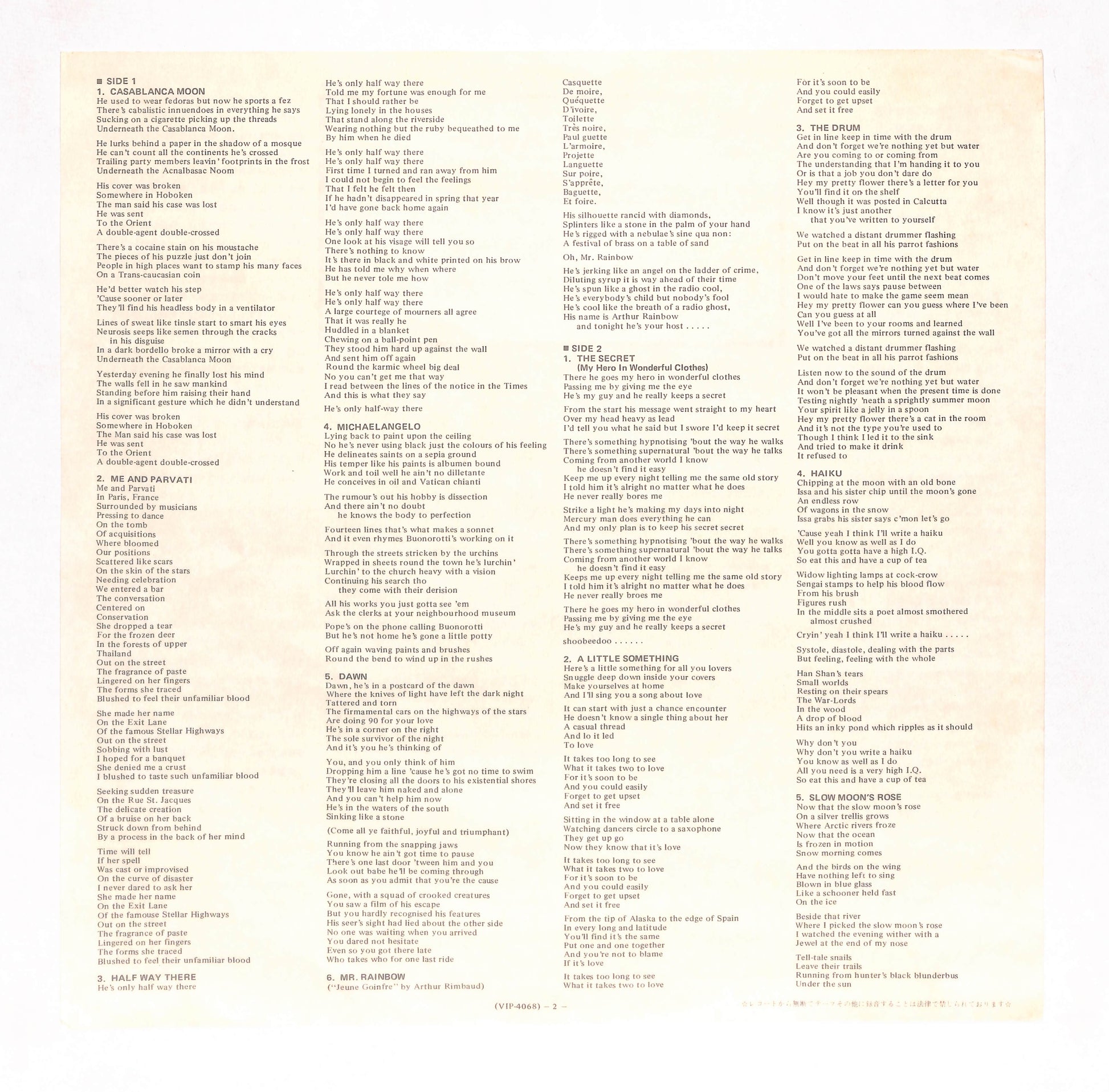 良品~並品。全体的にスレやキズが目立ち、中古品相応の使用感が認められる状態。再生に問題はありませんが、チリプツや目立つノイズが発生する可能性があります。程度に応じてVG+/VG/VG-の3段階に分けています。