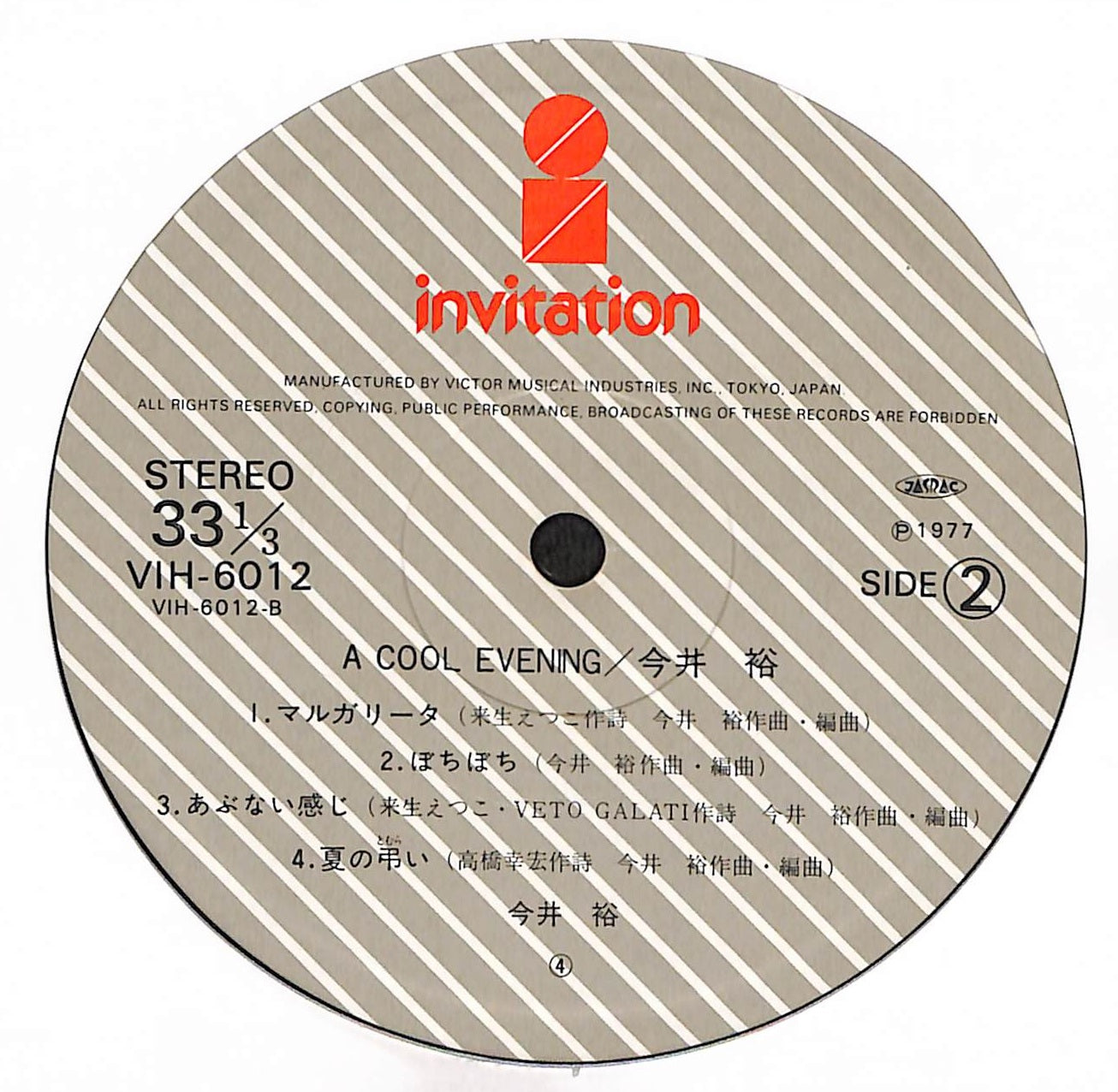 良品~並品。スレ、キズ、シミ、シワ、折れ、角打ち、リングウェア、ヒビ割れ、裂け、抜け、書込み、シール貼り(or 貼り跡)、テープ補修等、目立つ劣化や欠陥が認められる状態。程度に応じてVG+/VG/VG-の3段階に分けています。