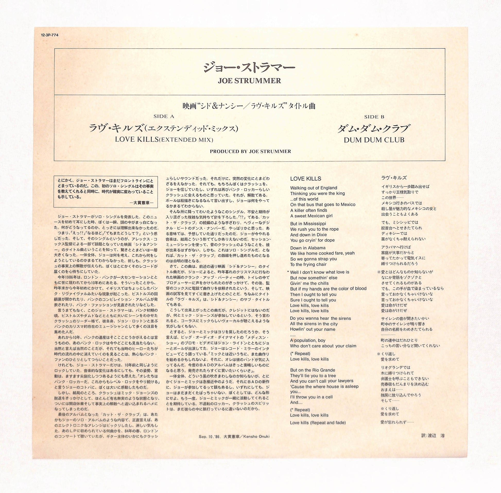 Joe Strummer - Love Kills