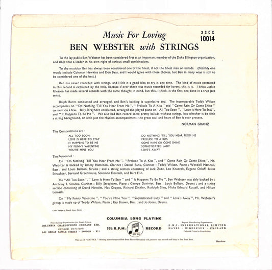 Ben Webster With Strings - Music For Loving
